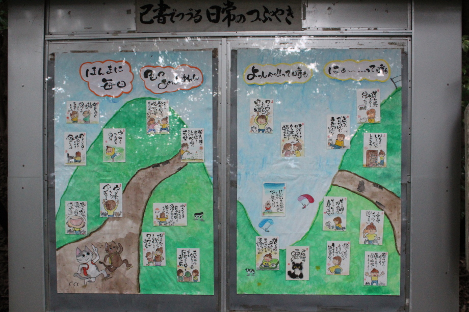 | H20/10,11月 | 11月30日まで、「ひとりじゃないよ」をテーマに遠藤睦美さんが「お茶でも飲みながら」という会のチラシに書かれていた思いを書にした作品と遠藤さんの教室で学ぶ生徒さんの書の作品が展示されました。 |