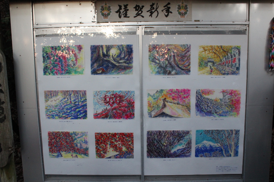 令和2年12月29日(火)まで、「赤松貞子」さんの主宰するグループが「絵手紙のパワーで山頂からコロナに負けないで」とエールを送る「絵手紙」が展示されました。 |