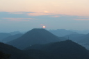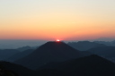 |  今朝(R7/9/8)の金華山上空は晴れ、頂上の温度計は26℃を指していました。日の出は山の稜線にかかった黒いガスの中からでした。 皆既月食が幻想的でした。  |