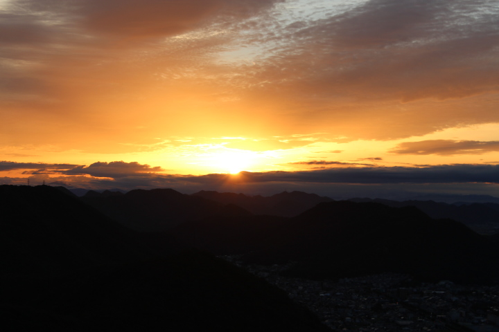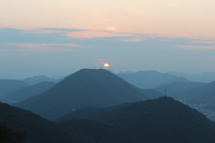 | 今朝(R7/9/9)の金華山上空は晴れ、頂上の温度計は25.5℃を指していました。日の出は山の稜線にかかった雲の中からでした。 | ||