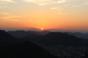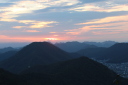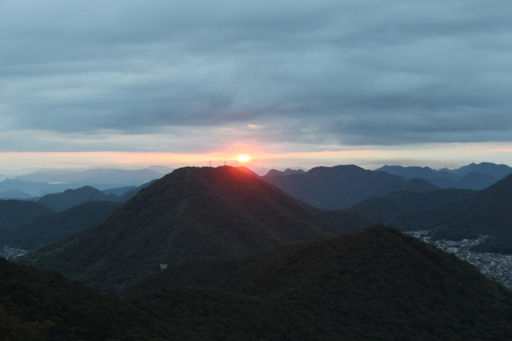 | 今朝(R7/9/6)の金華山上空は晴れ、頂上の温度計はこの秋最低の23.5℃を指していました。日の出は台風一過で奇麗に晴れ上がった山の稜線からでした。 | ||