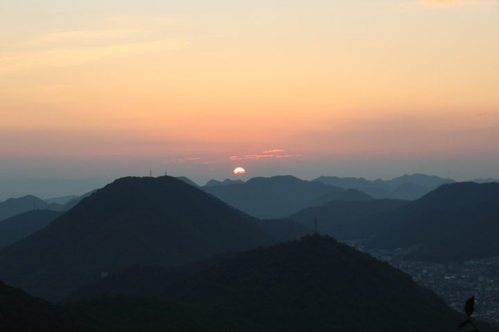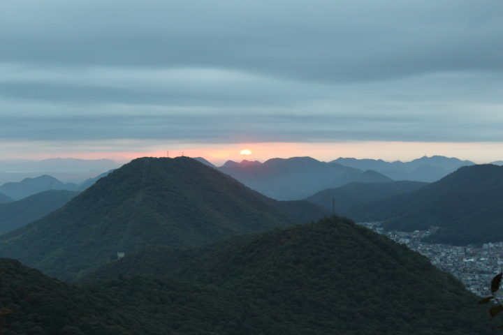 | 今朝(R7/9/22)の金華山上空は晴れ、頂上の温度計はこの秋最低の19℃を指していました。日の出は山の稜線にかかった雲の中からでした。 | ||