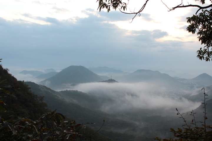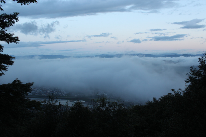 |  今朝(R7/9/21)の金華山上空は曇り空、頂上の温度計は22℃を指していました。今朝は長良川の上に雲海ができていました(右写真)。 熱田神宮(名古屋市)からマラソンで金華山に登るイベントが行われ50人ほどの方が登ってきて見えました。皆さん元気ですね・・・・。  |