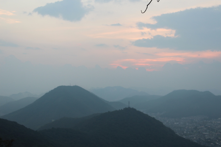 | 今朝(R7/9/4)の金華山上空は晴れ、頂上の温度計は26℃を指していましたが暑かったです。日の出は山の稜線にかかった雲が厚く高くまであり時間がかかりそうでしたので諦めて下山しました。 | ||