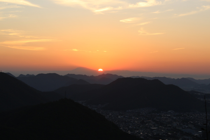 | 今朝(R7/9/30)の金華山上空は晴れ、頂上の温度計は18℃を指していました。日の出は山の稜線にかかった雲の上からでした。 | ||