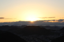 | 今朝(R7/9/3)の金華山上空は晴れ、頂上の温度計は26.2℃を指していました。日の出は山の稜線にかかった雲の横からでした。 |
