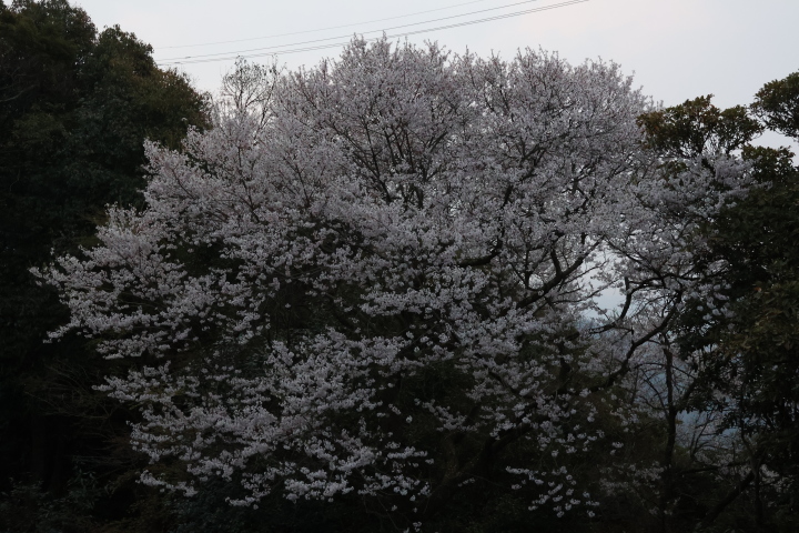 | 今朝(R8/3/23)の金華山の天候は麓についた頃は霧雨・頂上へ着いた頃は雨も上がり曇り、頂上の温度計は8.5℃を指していました。 お城南側のサクラが満開近くなりました。 |