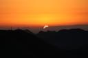 | 今朝(R8/4/8)の金華山の天候は晴れ、頂上の温度計は昨日より10℃低い6℃を指していました。日の出は山の稜線からでした。 |