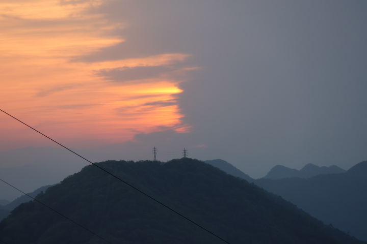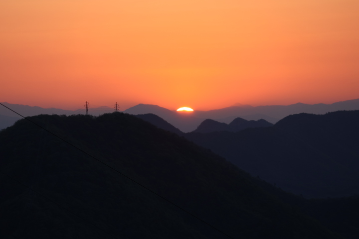 今朝(R8/4/9)の金華山の天候は晴れ、頂上の温度計は9℃を指していました。日の出は今朝も山の稜線からでした。